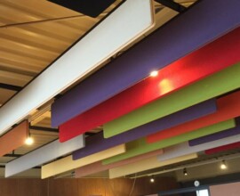 芯材にグラスウールを入れ、ファブリックでカバーし吸音効果を実現した製品です。ファブリックは豊富なカラーバリエーションがあり、空間の印象を明るくしながら優れた吸音性能を実現します。